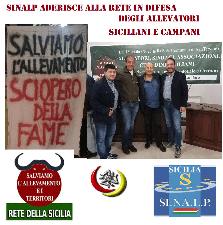 La Delegazione Sinalp Sicilia composta dal Segretario Regionale Dr. Andrea Monteleone, dal Responsabile Regionale del CAA Sinalp Andrea Tomarchio con i colleghi Alfio Tomaselli ed il delegato CAA Sinalp dei Nebrodi Dr. Giacomo Fascetto ha dato il pieno appoggio a lottare per difendere il loro diritto al lavoro ed ha aderito alla RETE “Salviamo l’Allevamento ed i Territori”.