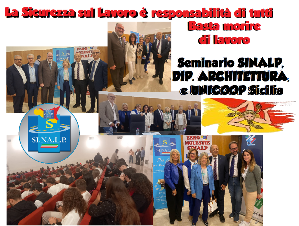 Per dare un senso reale e concreto alla crescita sociale ed economica della nostra terra, la Confederazione Sindacale autonoma SINALP SICILIA, in collaborazione con UNICOOP SICILIA ed il DIPARTIMENTO di ARCHITETTURA dell’Università Statale di Palermo, hanno dato vita al Seminario “La sicurezza sul lavoro è responsabilità di tutti – Basta morire di lavoro” con l’obiettivo di dare vita ad un confronto tra i tanti aspetti inerenti la Sicurezza, e riflettendo sulle sfide attuali e future nel campo della salute e della sicurezza sul lavoro.