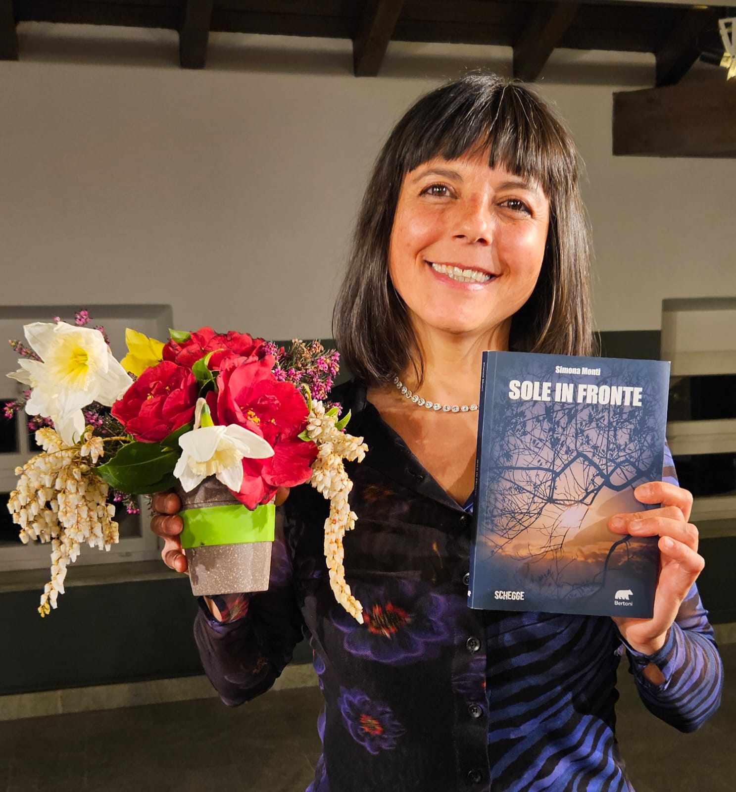 Simona Monti vive e lavora come educatrice professionale a Morbegno (SO), circondata dalle amate montagne. Ha vinto svariati concorsi di poesia ed è stata pubblicata in diverse raccolte, fra cui l’antologia letteraria “Una poesia per Telethon” su CD-Rom, edito da Age Book Srl (2004), l’antologia “Tutta la forza della poesia: il talento, l’esperienza, la scintilla”, edita da Lieto Colle (2008); “Dona chi sei”, edita da Verso l’Arte Edizioni (2011); “Sfide-oltre i limiti fisici, mentali e sociali”, edita da Rubbettino editore (2005), “Buon compleanno Margherita Hack”, edito da Il formichiere (2022). Ha ideato e partecipato con tanta passione a reading poetici e manifestazioni culturali, curando in particolare la realizzazione dello spettacolo artistico “I poeti lavorano di notte”. “Sole in fronte” è il suo primo romanzo.