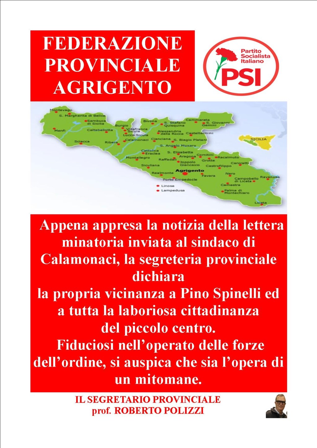 SOLIDARIETà SINDACO CALAMONACI
