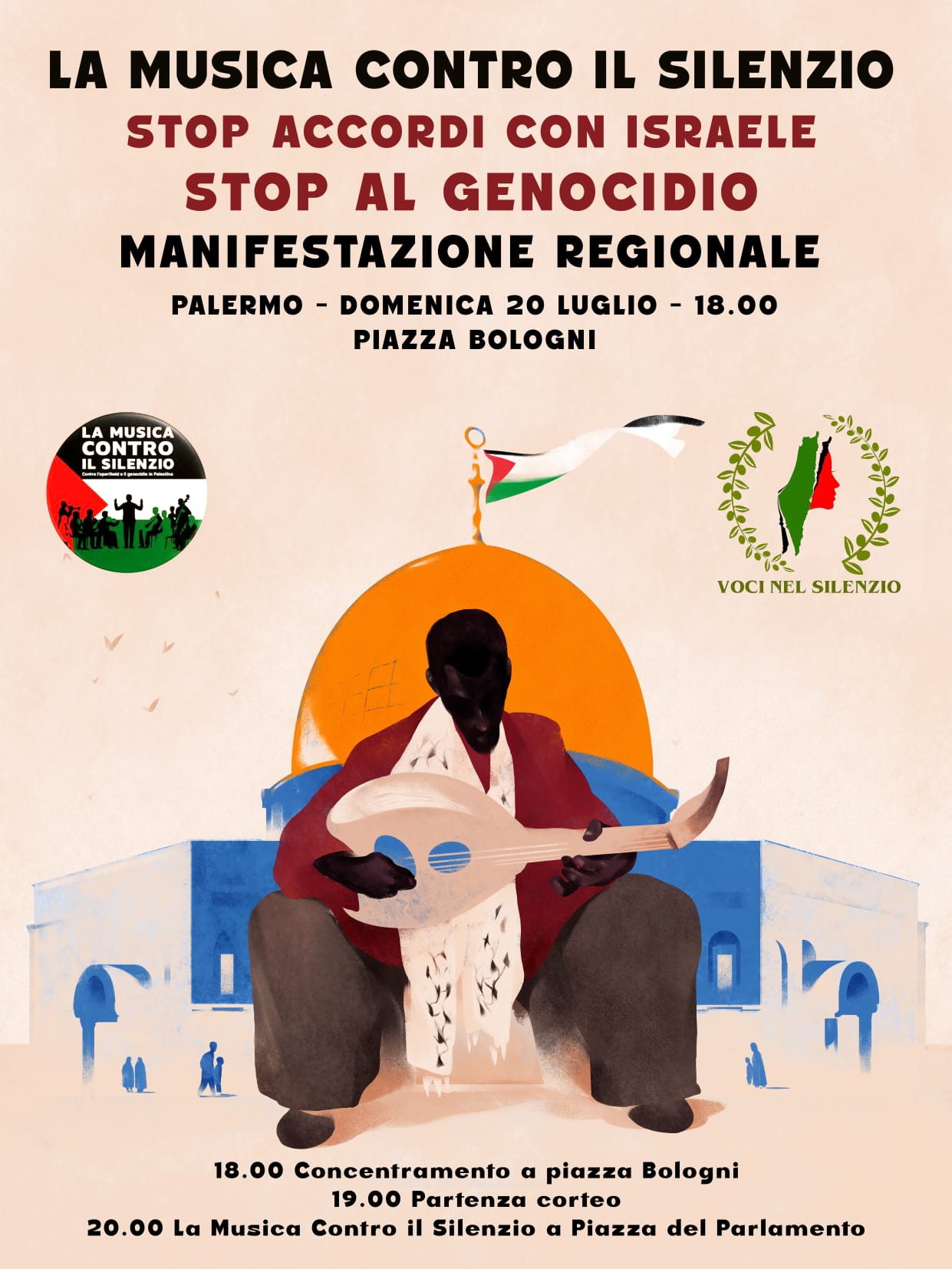Il 20 Luglio ci troveremo di nuovo in piazza a Palermo, con una manifestazione regionale per chiedere l’interruzione degli accordi con Israele e per esprimere la nostra solidarietà incondizionata con la resistenza del popolo palestinese.