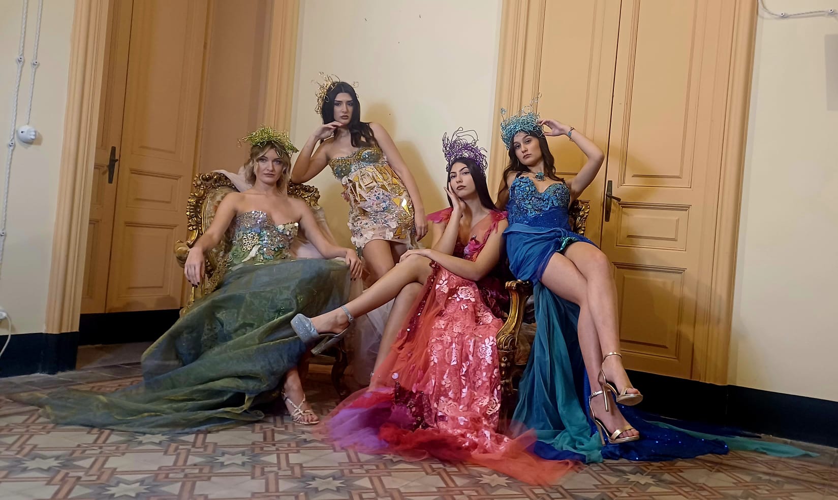 La sfilata di moda curata dalla fashion designer e stilista Maria Giovanna Costa ha stordito i presenti ed ha abbellito le mura antiche di Palazzo Cocuzza, sede della Collettiva.