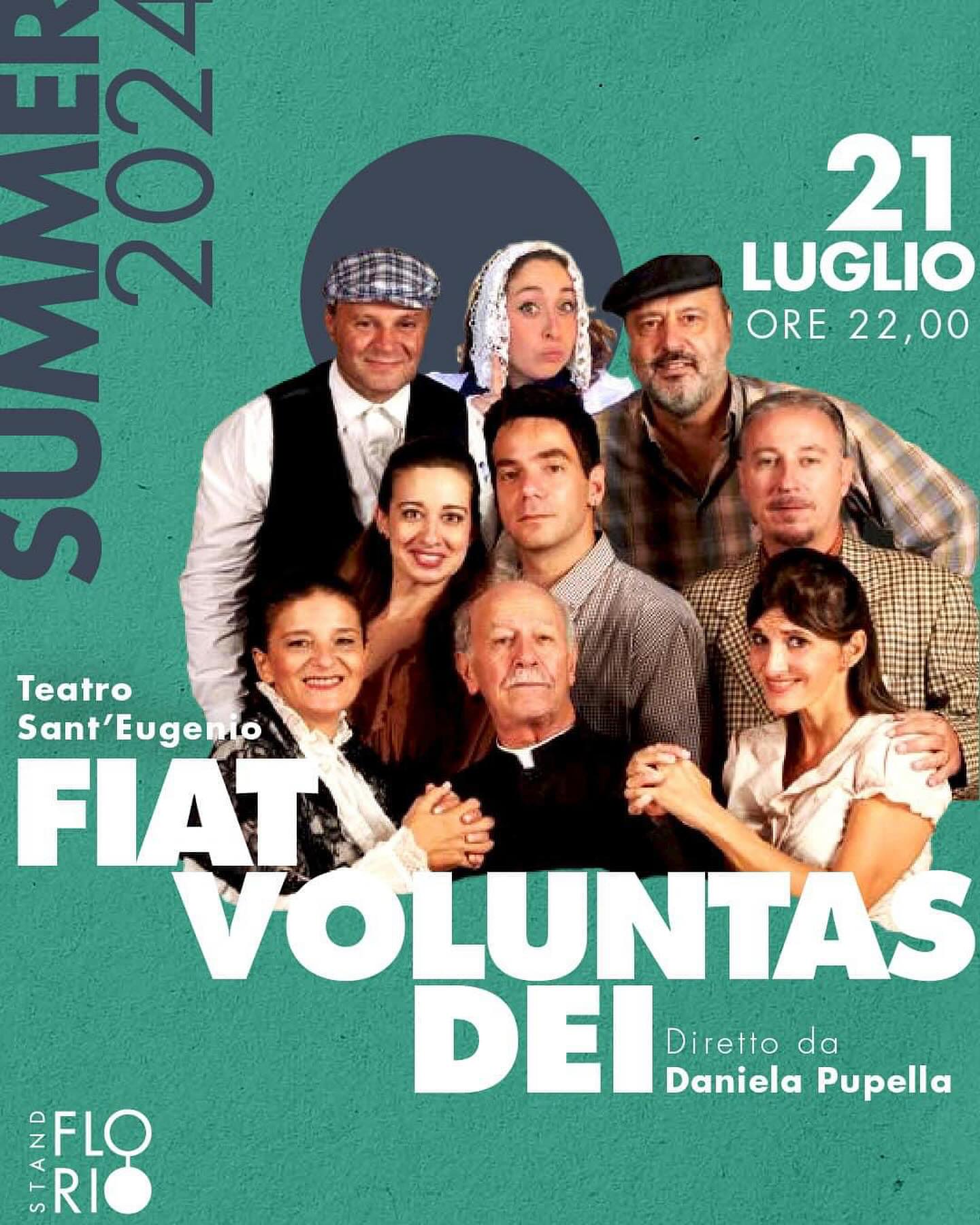 Con la commedia brillante “Fiat voluntas dei” prosegue, domenica 21 luglio, alle ore 22, la Rassegna culturale “Summer 2024” allo Stand Florio di via Messina Marine 40 a Palermo. L’opera classica di Giuseppe Macrì vede protagonista Padre Attanasio, qui interpretato da una maschera palermitana d’eccellenza: Gino Carista che, sul palco, sarà insieme a Daniela e Lavinia Pupella, Leonardo Campanella, Luciano SergioMaria, Fabiola Arculeo, Valentino Pizzuto, Massimiliano Sciascia, e Maria Elisabetta Trupiano; per la regia di Daniela Pupella. Produzione, teatro Sant’Eugenio di Palermo – Direzione artistica Pupella.