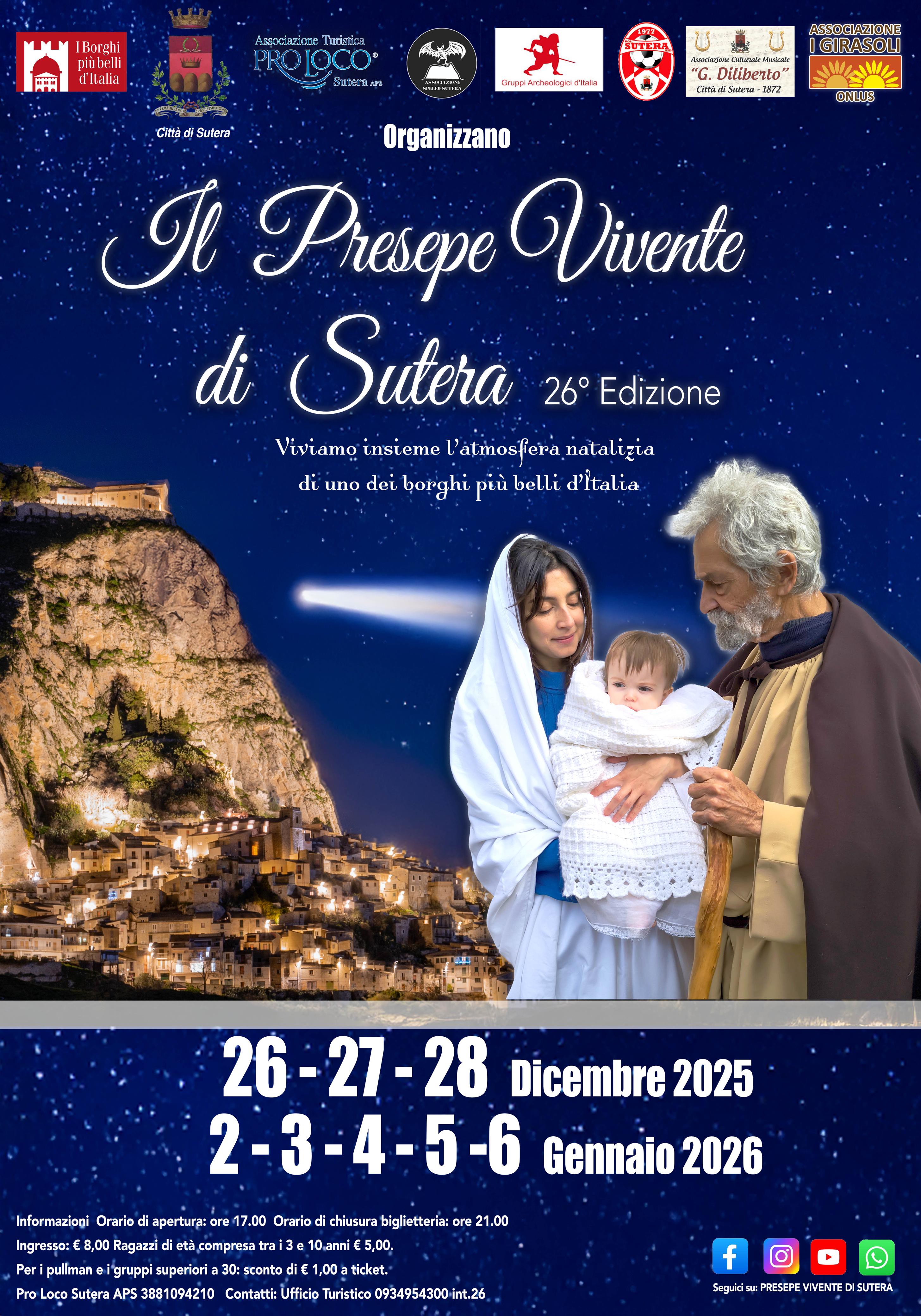 L’edizione 2025 si svolgerà il 26, 27 e 28 dicembre 2025 e il 2, 3, 4, 5 e 6 gennaio 2026, dalle ore 17:00 alle ore 21:00, nel quartiere Rabato di Sutera, in provincia di Caltanissetta.