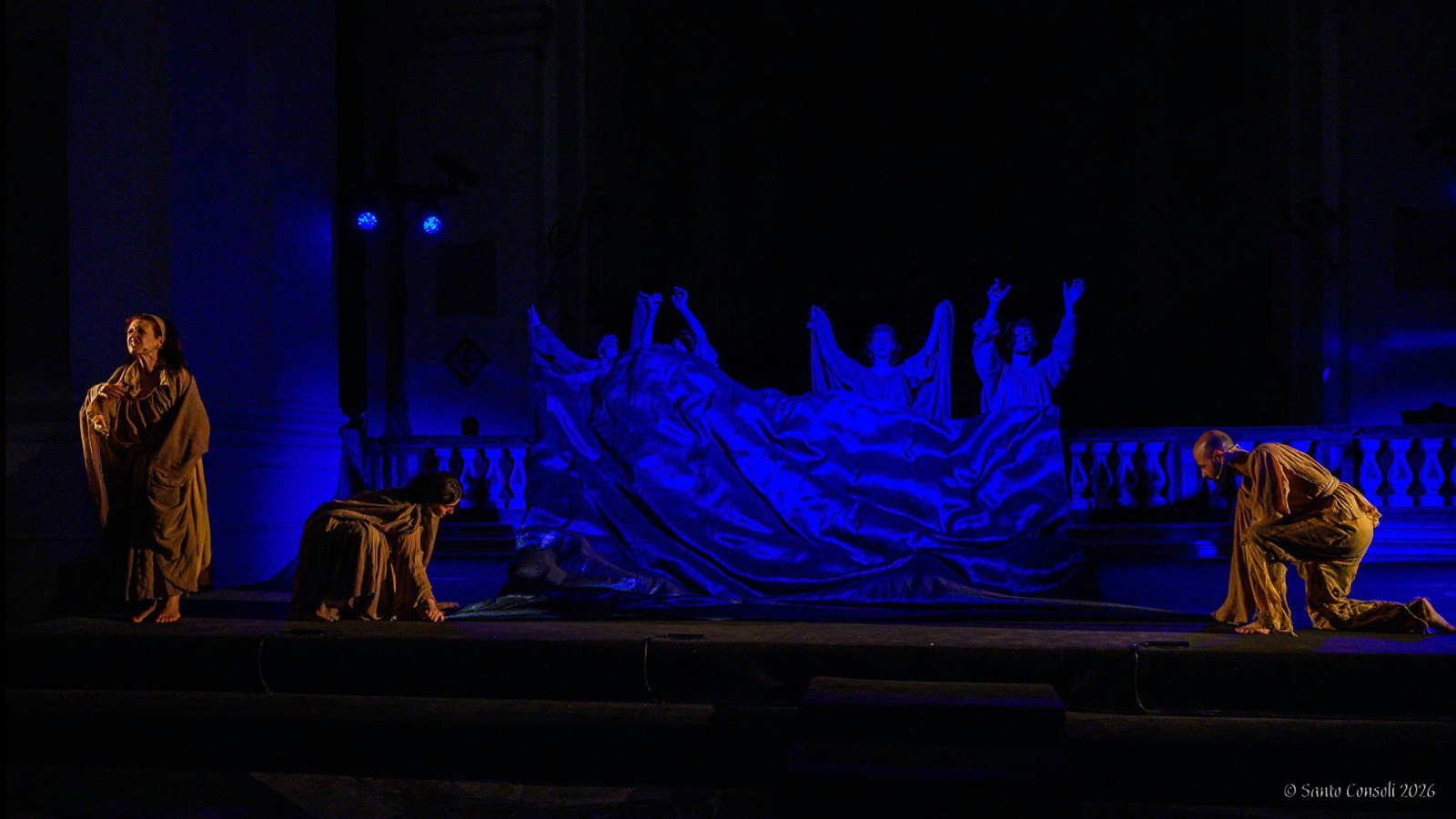 “Se la fanciulla Agata – ha detto Davide Sbrogiò, che interpreta in scena Quinziano, parlando del martirio – crede in un unico Dio e in Cristo, il proconsole dell’imperatore Decio è invece espressione di un culto pagano e politeista. E questo è il motivo del suo scontro violentissimo con la straordinaria Agata, dalla quale all’inizio si sentirà attratto. Ma il conflitto culminerà nella condanna a morte che la fanciulla, dopo esser stata torturata, dovrà subire”.