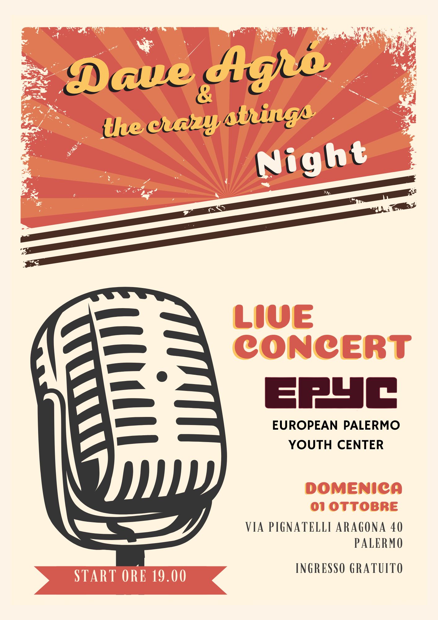 All’occasione del Teatro Lab Party, è previsto un concerto di Dave Agrò & the Crazy Strings @ EPYC (European Palermo Youth Centre)