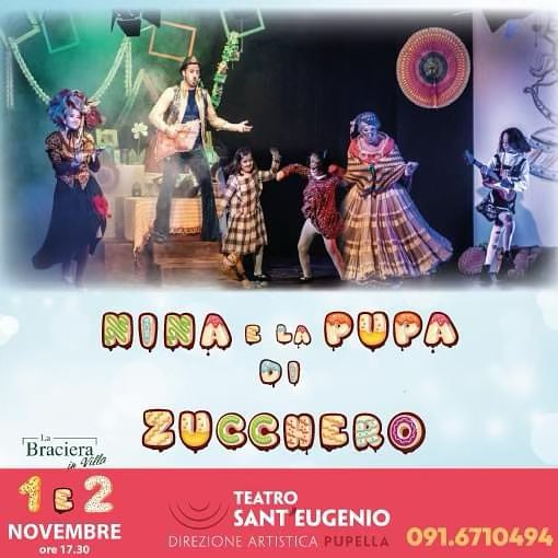 Venerdì 1 e sabato 2 novembre, alle ore 17.30, al teatro Sant’Eugenio di piazza Europa 39/41 a Palermo, andrà in scena lo spettacolo per famiglie “Nina e la pupa di zucchero” scritto e diretto da Lavinia Pupella. Protagonisti sul palco: Daniela e Lavinia Pupella, Leonardo Campanella, Iaia Corcione, Vincenzo Pepe, Luciano SergioMaria, e Francesca Picciurro che veste i panni della pupa di zucchero, e poi, le piccole Delia Cerrito, e Greta Mulè che interpreta la sorellina di Nina.