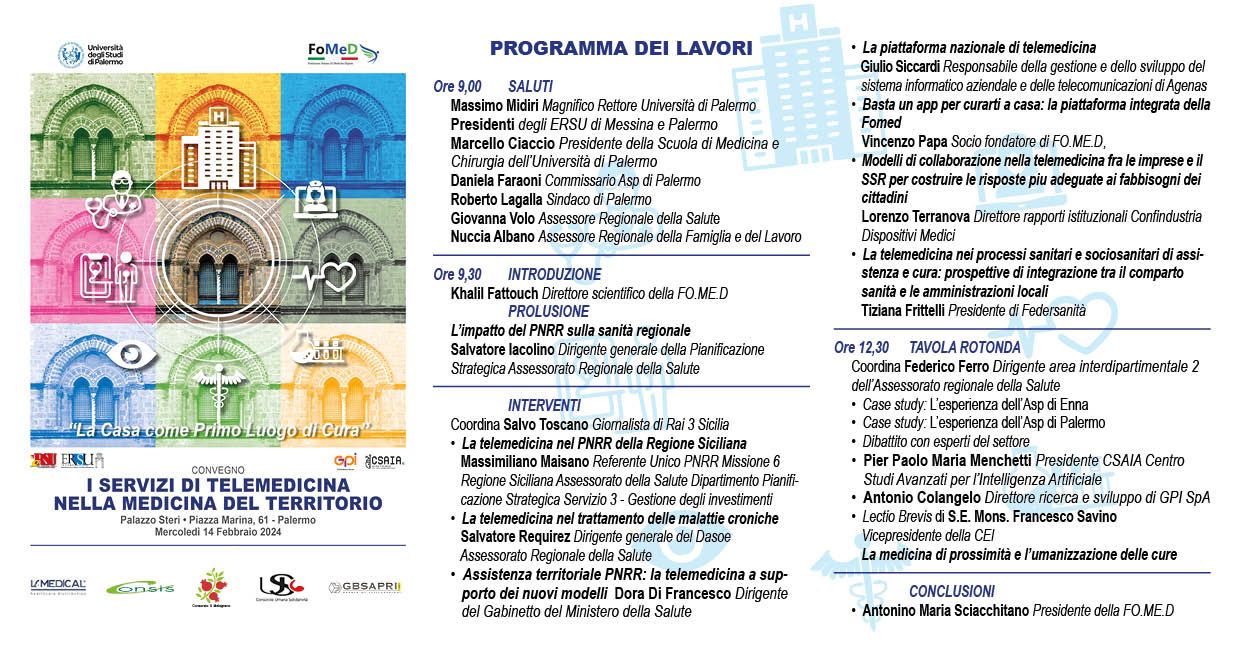Il programma completo: https://www.fmdservices.org/wp-content/uploads/2024/02/Fomed-Evento-Palermo-Flyer-2.pdf