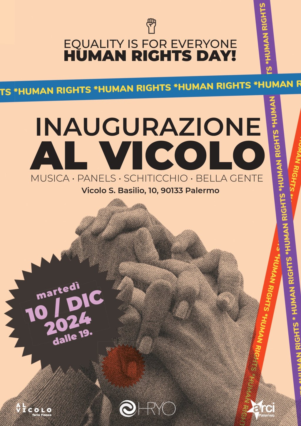 I componenti di questa realtà vivono dal 2009 un percorso straordinario in cui cercano di essere portatori di un cambiamento positivo, volto all’inclusione sociale e al riconoscimento dei diritti. Una mission che ispira pure il programma dell’evento del 10 dicembre, quando, in occasione della Giornata internazionale dei Diritti Umani, l’associazione umanitaria palermitana aprirà ufficialmente i battenti de “Al Vicolo”, uno spazio di comunità in vicolo San Basilio 10/12 a Palermo.