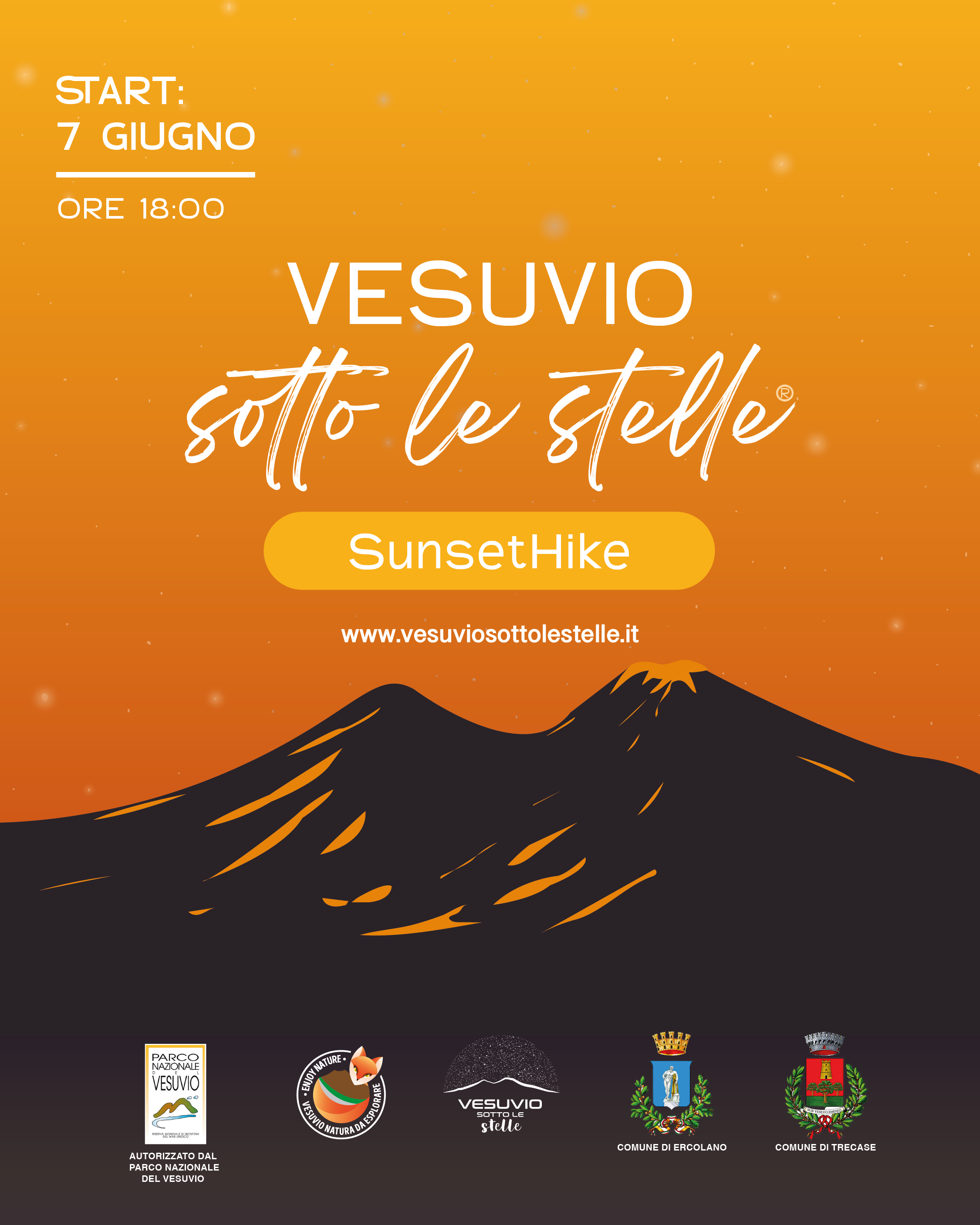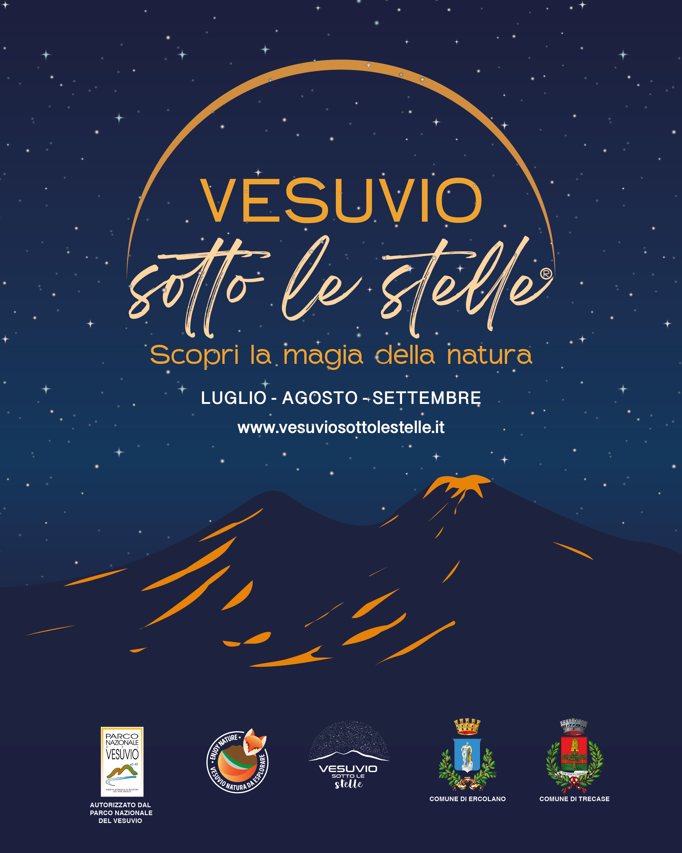 Vesuvio sotto le stelleÒ è un marchio registrato, la manifestazione è alla sua undicesima edizione e ha l’autorizzazione dell’Ente Parco Nazionale del Vesuvio, il Patrocinio morale del comune di Trecase, il Patrocinio morale del comune di Ercolano e l’Autorizzazione per la viabilità del comando della polizia municipale di Ercolano.