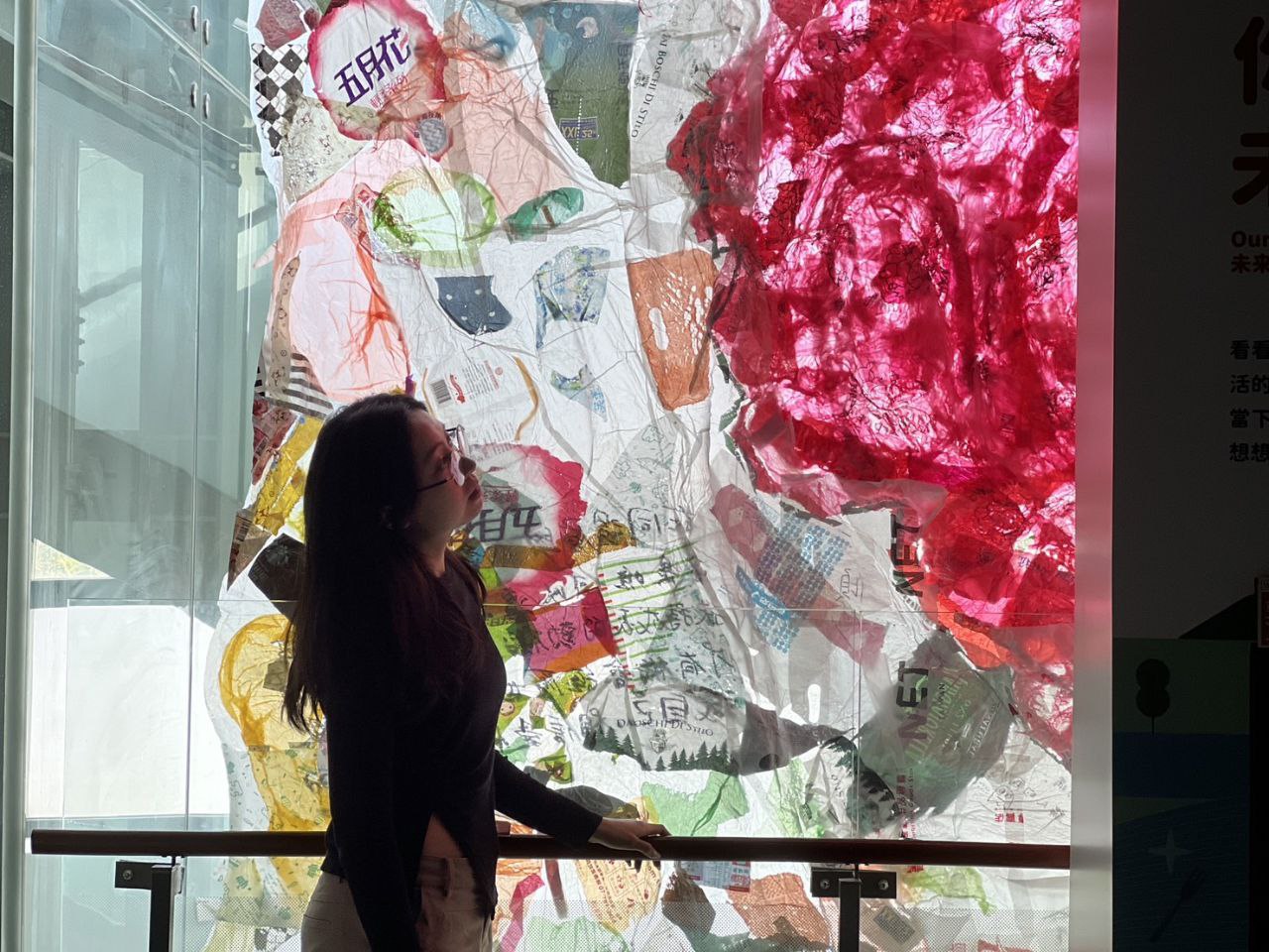 L’installazione è stata creata interamente in plastica riciclata con la tecnica Ironed Plastic e ogni pezzo di plastica utilizzato dall’artista incorpora un pensiero “About Love” (ispirato al titolo della mostra al Taitung Art Museum, esito della residenza, About Love – Understanding Karl Marx through Love a cura di Hsiao-Ying Lai) scritto personalmente dai donatori locali; un gesto che ha trasformato l’opera in un’esperienza collettiva e interattiva che riflette le considerazioni e le impressioni della comunità.