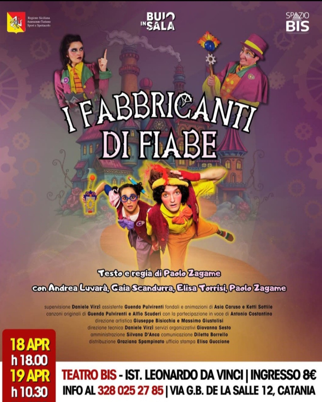 L’applaudita ed amata rassegna “Piccoli Sguardi” dedicata al Teatro per le nuove generazioni si conclude sul palco di Teatro Bis sabato 18, alle ore 18.00, e domenica 19 aprile, alle ore 10.30, con l’atteso spettacolo musicale “I Fabbricanti di Fiabe” scritto e diretto dal giovane e talentuoso Paolo Zagame.