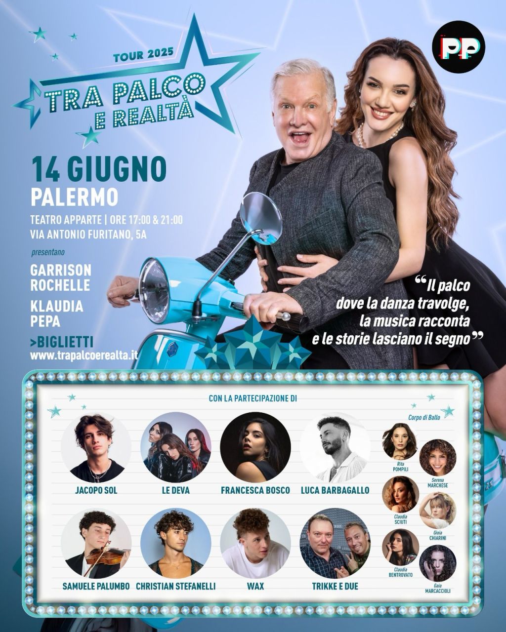 Dopo il successo delle precedenti edizioni, torna in tour per il terzo anno consecutivo lo spettacolo teatrale “Tra Palco e Realtà, con una nuova veste scenica più dinamica e coinvolgente. Dopo la Calabria e la Puglia, il tour farà tappa in Sicilia, a Palermo sabato 14 giugno con due spettacoli, alle ore 17 e alle ore 21, al Teatro Apparte, in via Antonio Furitano 5, per una serata all’insegna della danza, della musica e delle storie che lasciano il segno.