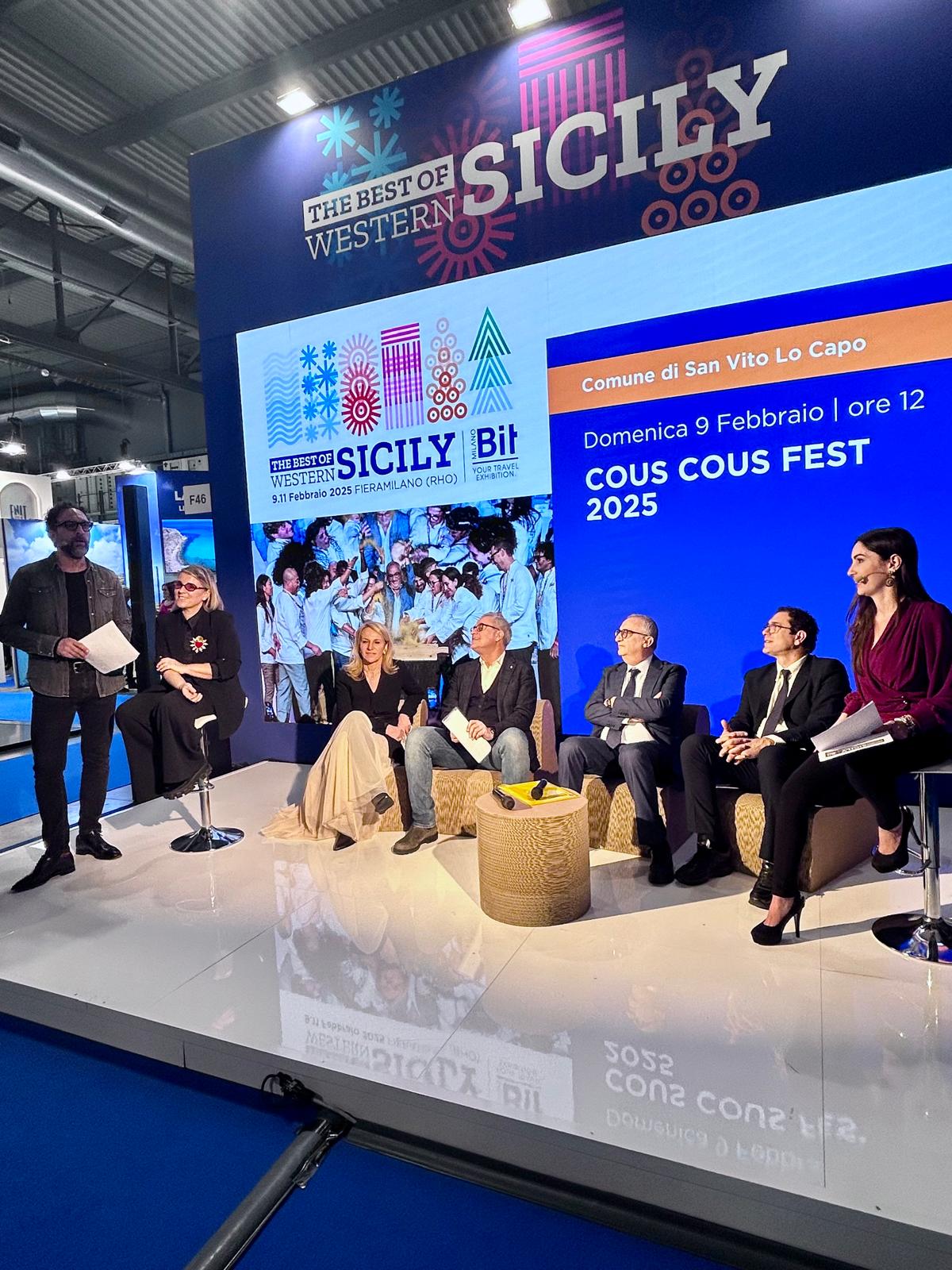 Prima giornata di Fiera a Milano per The Best of Western Sicily, il progetto dell’agenzia Feedback che mette insieme diversi partner per promuovere il territorio della Sicilia Occidentale alla Bit, la Borsa Internazionale del Turismo di Milano la cui 45esima edizione ha preso il via al quartiere fieristico di Rho. Per il quinto anno consecutivo, il progetto si conferma come uno degli appuntamenti principali per promuovere la Sicilia Occidentale attraverso un’azione sinergica che coinvolge enti pubblici e privati, tra cui i Comuni di Castellammare del Golfo, Favignana-Isole Egadi, Mazara del Vallo, San Vito Lo Capo, il Dipartimento della Pesca Mediterranea della Regione Siciliana, l’Università degli Studi di Palermo e CoopCulture. Ad inaugurare il programma della giornata, dopo il taglio del nastro, l’edizione 2025 del Cous Cous Fest che si svolgerà dal 19 al 28 settembre 2025 a San Vito Lo Capo. Il Festival internazionale dell’integrazione culturale, premiato a novembre come secondo festival italiano al Bea, il Best event award a Roma, è stato presentato dal sindaco della cittadina, Francesco La Sala, dall’assessore al turismo Angelo Bulgarello, da Marcello Orlando, Ceo di Feedback, società producer dell’evento, con il contributo di Pino Zuliani, Direttore nazionale Customer marketing di Conad, main sponsor della manifestazione, e di Roberta Garibaldi, Presidente dell’Associazione italiana turismo enogastronomico in un incontro condotto da Federico Quaranta. “A settembre – ha detto il sindaco La Sala – la nostra cittadina si trasforma nella capitale mondiale del cous cous e, grazie a questo progetto di marketing territoriale nato 28 anni fa insieme all’agenzia Feedback, siamo riusciti ad allungare la stagione turistica fino ad ottobre. Le sole presenze alberghiere a settembre sono passate dal 1999 ad oggi dalle circa 11 mila ad 85 mila”.