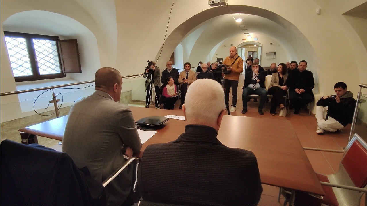 e – L’incontro con i giornalisti nel Palazzo Trigona