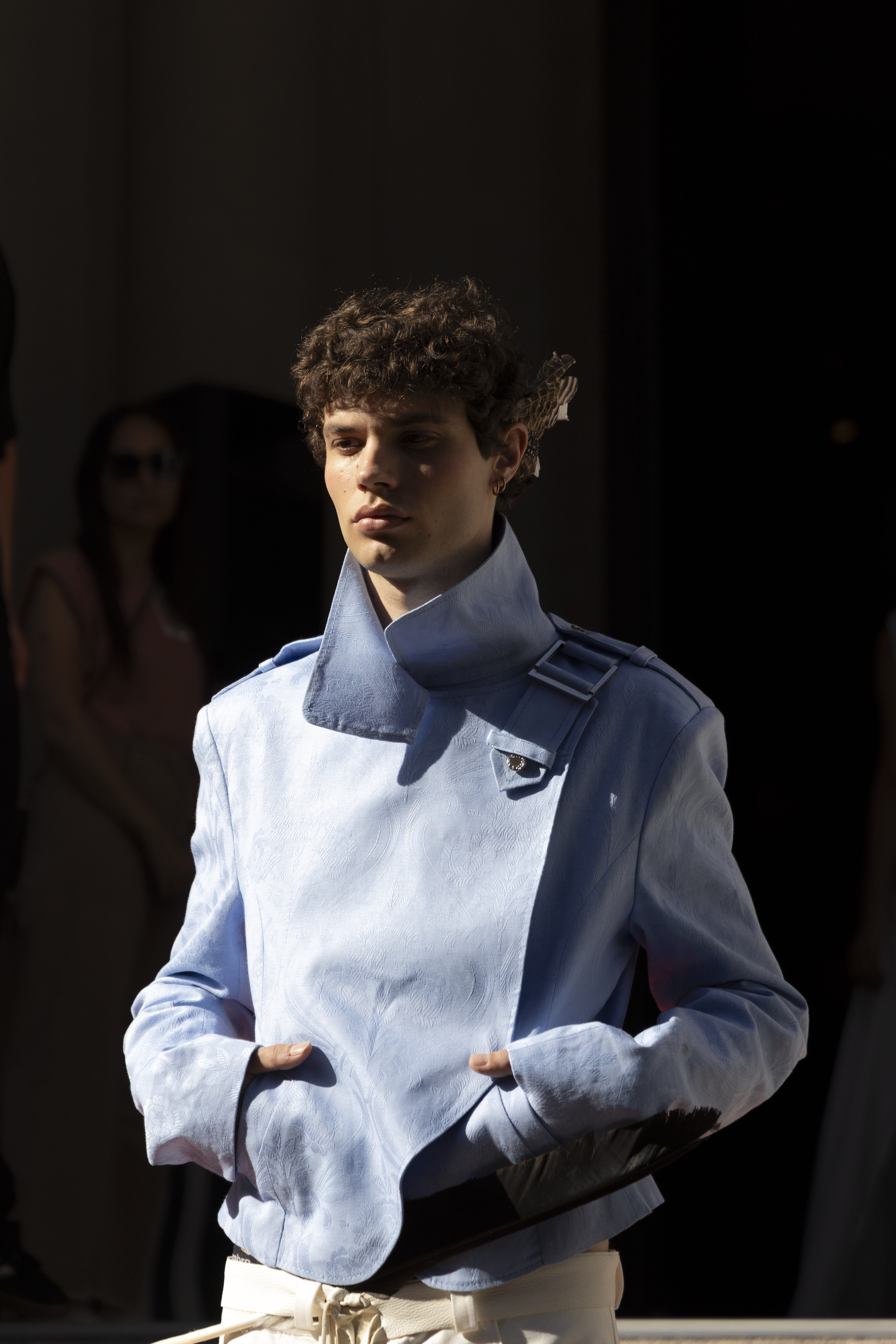 Il Premio del Pubblico è andato a Matteo Gagliano, 22enne di Cerami (Enna), autore della collezione onirica Cicardian Rhythm, pensata per la donna ma con alcuni look uomo, un omaggio al notturno, a ciò che prende vita quando si fa buio, in un viaggio per luoghi “improbabili” accompagnato dal ritmo ancestrale circadiano. Cifra stilistica è l’artigianalità espressa nel ricamo, arte che assorbe dall’ambiente famigliare e dalle tradizioni siciliane: il damasco e la lana di pecora grezza – ossia l’interno e l’esterno del cuscino, simbolo del sonno – si fondono a creare giacche, canottiere, gonne. Il progetto vuole dunque essere un’ode ai travestimenti notturni, all’intimità della camera da letto e al trasformismo, padrone della notte, dove i contorni sono sbiaditi e le lenzuola diventano abiti; un’ode agli amori che si consumano al buio, alle energie inafferrabili e senza nome, che alle luci dell’alba svaniscono in un ricordo, come la sensualità, che di giorno si nega.