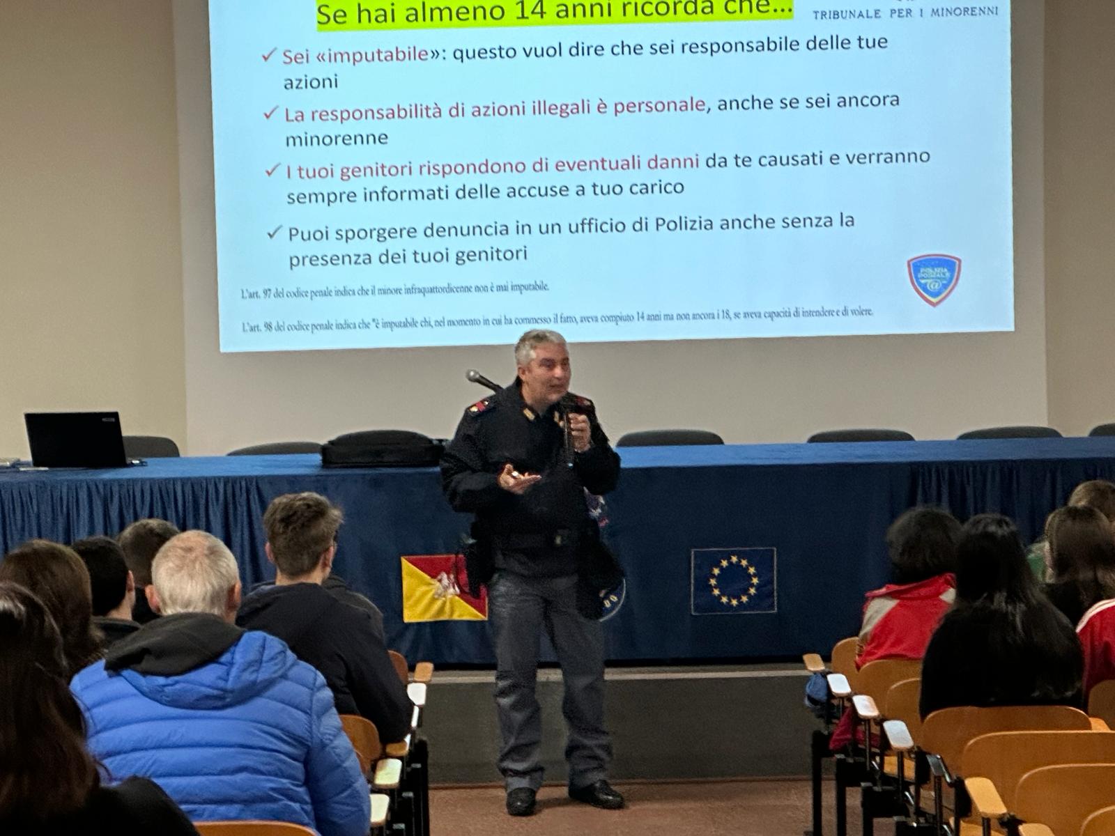 Un incontro con l’agente scelto dott. Mario Bonanno che ha affrontato, con gli studenti, il tema della prevenzione del cyberbullismo. Tre sono i tipi di risposta ad un tale fenomeno: passiva (ignorare l’evento), attiva (riportare l’accaduto a qualcuno e chiedere aiuto), reattiva (reagire in prima persona).