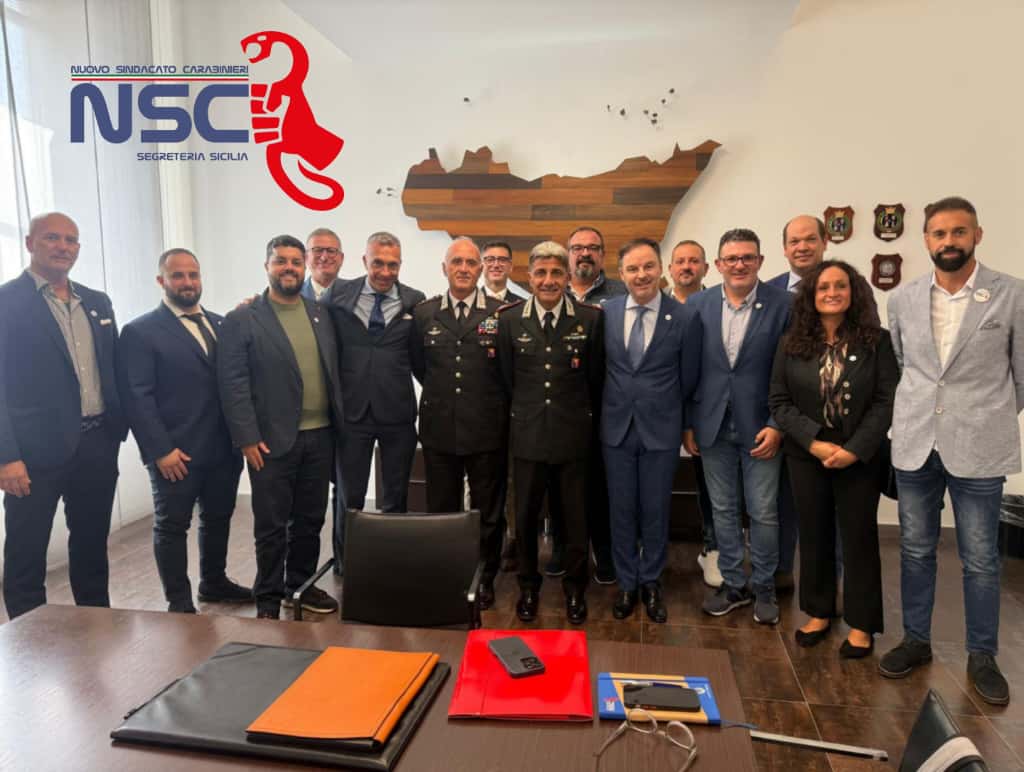 Lo scorso 1 ottobre si è tenuto il primo incontro ufficiale tra una delegazione di NSC, composta da dirigenti sindacali provenienti da tutte le province dell’isola, e il Comandante della Legione Carabinieri “Sicilia”, Generale di Brigata Ubaldo Del Monaco, recentemente insediatosi al vertice dell’importante struttura dell’Arma.