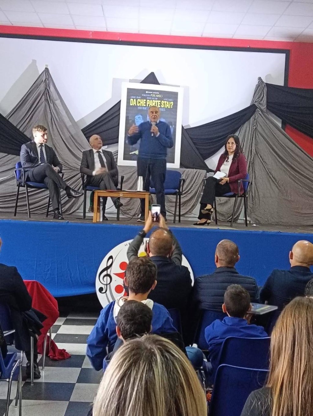 L’incontro con Pietro Grasso, moderato dalla docente Manuela Spina, è stato aperto dagli interventi del sindaco di Floridia, Marco Carianni, del dirigente scolastico del I istituto “De Amicis”, Giorgio Agnellino, e anticipato da una breve performance sulla mafia, portata in scena dagli studenti della scuola.