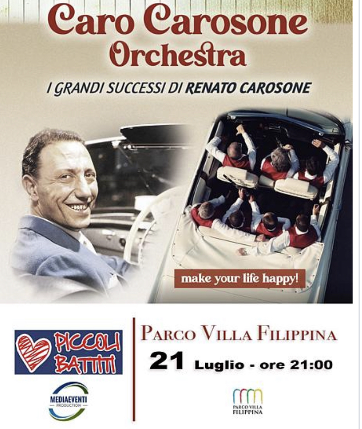 Un concerto per Renato Carosone, eseguito da “Caro Carosone Orchestra”, a Palermo il 21 luglio alle ore 21, nello splendido scenario del parco di Villa Filippina.