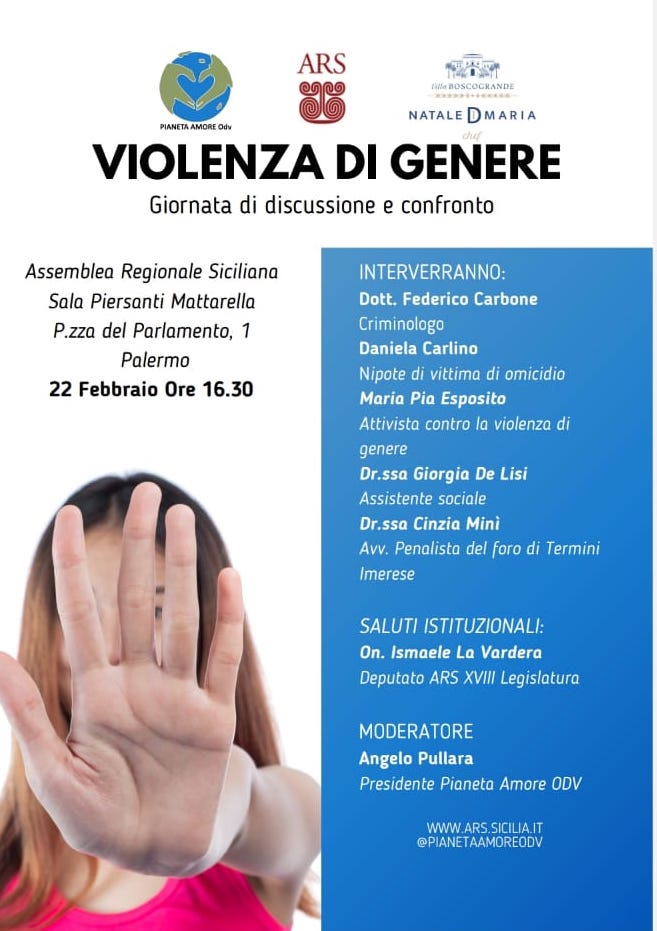 Appuntamento a Palermo, per discutere sulla violenza di genere, con un’iniziativa di Pianeta Amore, all’Ars, giorno 22 febbraio alle ore 16.30, nella sala Piersanti Mattarella.