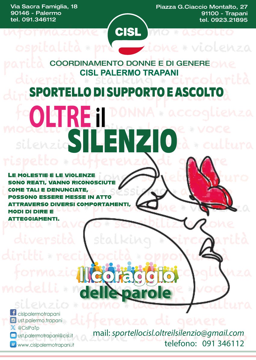 Affiancare, sostenere sia legalmente, sia psicologicamente, sia attraverso la conoscenza delle misure esistenti, le vittime che decidono di uscire dal vortice della violenza di genere, nei luoghi di lavoro e in ambito familiare. Nasce alla Cisl Palermo Trapani, in occasione della Giornata internazionale per l’eliminazione della violenza contro le donne che ricorre domani, lo sportello di supporto e ascolto contro la violenza di genere, ‘Oltre il Silenzio’, nella sede del sindacato in via Sacra Famiglia a Palermo, e che si avvarrà della consulenza di specialisti che ascolteranno, consiglieranno, sosterranno concretamente le vittime della violenza di genere. “Attraverso la consulenza professionale di uno psicologo, un avvocato, un’assistente sociale, e operatori informati su tutte le misure che hanno l’obiettivo di sostenere anche economicamente le vittime della violenza – spiega Vania Pellerito responsabile del Coordinamento di genere della Cisl Palermo Trapani e dello Sportello ‘Oltre il Silenzio’ -, vogliamo fornire un aiuto concreto a tutte quelle donne che hanno paura, ma che devono sapere di non essere sole, di poter contare, non solo sulla nostra comprensione, ma anche del nostro sostegno concreto. Il nostro sportello sarà a disposizione di tutti coloro che ritengono di essere vittima di abusi sul luogo di lavoro o fra le quattro mura domestiche, di mobbing grazie all’ausilio del nostro sportello mobbing, di molestie, di discriminazione diretta e indiretta”. Per sostenere l’azione dello sportello il coordinamento di genere della Cisl Palermo Trapani ha realizzato un vademecum che sarà diffuso in tutte le sedi del sindacato a disposizione dei cittadini, e nei luoghi di lavoro, con la descrizione di tutte le forme di molestie e violenze nei luoghi di lavoro e non, per poterle riconoscere e denunciare e con l’obiettivo di fornire uno strumento di supporto nell’attività di informazione e sensibilizzazione.                                          “Se le vittime di violenza che sia fisica o psichica, riescono ad andare ‘oltre il silenzio’ in cui si rinchiudono a volte per paura, per vergogna o per le tante difficoltà che bisogna affrontare per guardare in faccia la realtà e tentare di cambiarla – commenta la segretaria generale Cisl Palermo Trapani Federica Badami – , troveranno la Cisl a loro fianco. Il nostro sportello non è solo un centro d’ascolto ma un aiuto concreto per tutti coloro, lavoratrici, lavoratori e non, che vivono nel vortice della violenza e intendono cambiare la propria vita. In anonimato possono rivolgersi ai nostri esperti e chiedere la consulenza psicologica, legale, quella dell’assistente sociale fondamentale in presenza di figli. Il vademecum poi ha l’obiettivo di fornire un’adeguata conoscenza per prevenire e contrastare ogni episodio che leda la dignità umana, che limiti la libertà e che impedisca la realizzazione di sé”. Badami conclude, “la denuncia deve andare di pari passo ad un’azione di sensibilizzazione e prevenzione nelle scuole, per far comprendere ai più giovani, che amare vuol dire rispettare e sostenere, non di certo possedere e condizionare”. La mail per contattare lo sportello è [ mailto:sportellocisl.oltreilsilenzio@gmail.com ]sportellocisl.oltreilsilenzio@gmail.com, il numero telefonico 091346112.