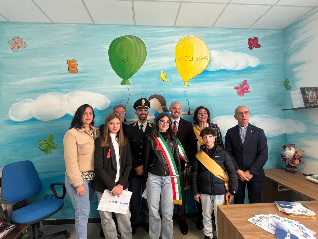 Un cielo azzurro che riempie la parete. Nuvole bianche. Farfalle colorate. Una ragazza che fluttua: ha due palloncini legati ai polsi. Due parole: no violenza. E poi libri, giochi e una finestra che inonda di luce l’ambiente. È stata inaugurata oggi, non a caso in occasione della giornata contro la violenza sulle donne, la nuova stanza per i colloqui protetti al commissariato di polizia di Corleone. Un’iniziativa frutto di una sinergia virtuosa che ha coinvolto il Comune (in particolare il settore 5 Servizi socio educativi e culturali), la polizia di Stato e l’istituto comprensivo “Giuseppe Vasi”. Il disegno scelto per il murale infatti è il vincitore di un concorso indetto per le scuole.