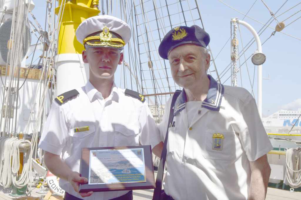 A ricevere la delegazione dell’ANMI di Palermo, guidata dall’ingegnere Claudio Longo, il comandante della spedizione, Tarnoaca Mircea, il comandante della nave, Silviu Moraru, il vice comandante Nicolae Napoleon e Ramona Petrea, allieva al secondo anno dell’Academia Navală “Mircea cel Bătrân”, che ha anche assunto il ruolo di interprete.