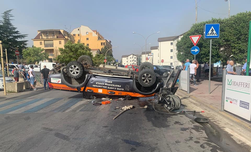 Ieri pomeriggio a Enna un mezzo della pubblica assistenza Ente Corpo Volontari Protezione Civile Enna è stato tamponato e si è ribaltato durante le attività di contrasto incendi. All’interno del veicolo si trovavano tre volontari che sono stati trasferiti in ospedale per i dovuti accertamenti.
