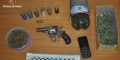 Estesa la perquisizione all’interno di un casolare di pertinenza del terreno, venivano rinvenuti e sequestrati sostanza stupefacente del tipo marijuana già essiccata per un peso complessivo di gr. 170 circa, nonché un revolver e munizioni di vario calibro.