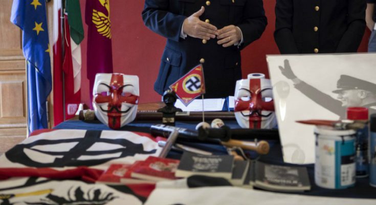 Gli indagati volevano costituire un movimento d’ispirazione apertamente filonazista, xenofoba ed antisemita denominato “Partito Nazionalsocialista Italiano dei Lavoratori”. E’ quanto emerso dalle indagini della Digos di Enna e del Servizio Antiterrorismo Interno che hanno portato oggi a 19 perquisizioni in tutta Italia nei confronti di altrettanti estremisti di destra. Sempre secondo le indagini, alcuni degli accusati avevano anche fatto riferimento ad una disponibilità di armi ed esplosivi e avevano condotto attività di reclutamento attraverso i propri account social.