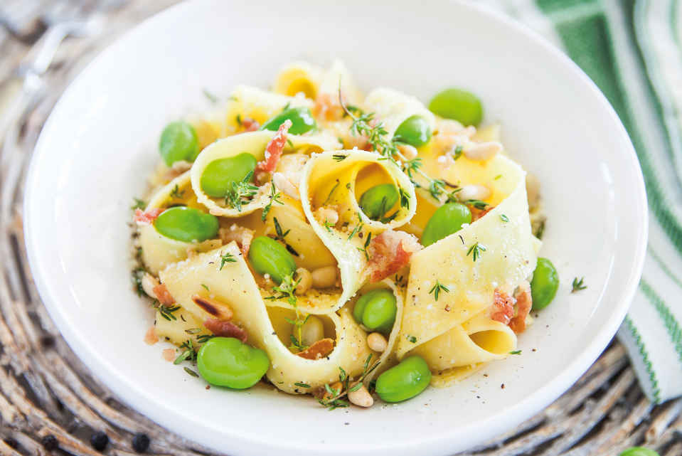 La pasta Cacio & Pepe con fave è la  versione primaverile della classica cacio e pepe, piatto simbolo della cucina romana allo stesso livello  di amatriciana e carbonara. Questa variante rende gustoso, colorato e vivace un primo piatto già eccezionale nella sua semplicità.