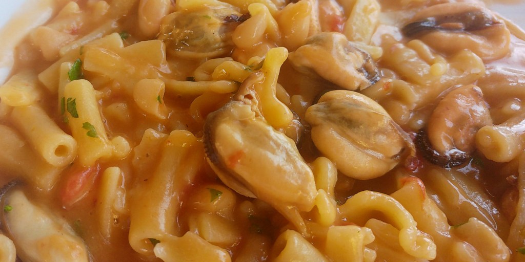 - A questo punto, potete cuocere la pasta a parte oppure direttamente nella casseruola. Se cuocete la pasta a parte, scolatela bene al dente, aggiungetela nella casseruola e completate la cottura, aggiungendo le cozze già sgusciate.