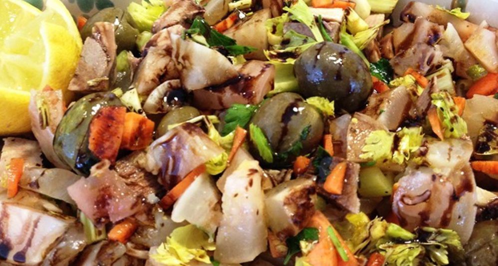 “Mussu e carcagnola”: è il nome che nelle borgate palermitane indica un’insalata fredda a base di carni. Ma si tratta di carni particolari. Piatto di riciclo per eccellenza, mussu e carcagnola indica il muso (la mascella) e le cartilagini della zampa del vitello, i cosiddetti “nervetti”. Queste carni vengono servite insieme a verdure e ortaggi e condite con olio, aceto, sale e pepe. Gli ingredienti di questo piatto sono tagli di carne di solito destinati ad essere gettati. Il risultato finale è un’insalata dal sapore molto forte e dalla consistenza complessa.
