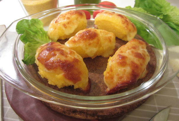 La preparazione di questi fagottini di polenta è molto semplice. Si tratta di una doppia cottura. Per prima cosa, fate bollire un litro e mezzo d’acqua salata in una grossa pentola. Versate a pioggia la farina un po’ alla volta. Mescolate bene con una frusta in modo da non far fare grumi. La polenta deve cuocere per 45 minuti, mescolando di continuo con un cucchiaio di legno. Dividete la polenta in otto parti, quindi mettetela in una teglia imburrata. Tagliate il taleggio a dadini e distribuitelo sulle porzioni di polenta. Fate sciogliete il taleggio in forno preriscaldato a 200° per 5 minuti.