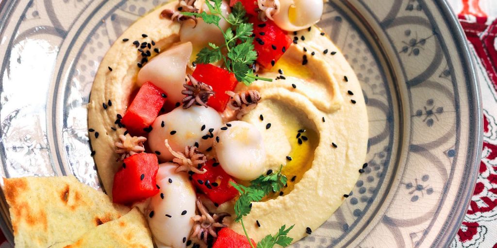 Ecco gli ingredienti per le seppie con anguria e crema di ceci, l’hummus