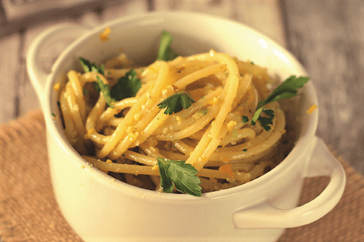 - Spaghettata agli agrumi, il segreto della ricetta è unire alla fine della preparazione dei piccoli cubetti di patata fritta