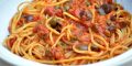 Gli spaghetti “alla puttanesca” sono un primo piatto tipico della cucina campana che si prepara con un sugo a base di pomodoro, olio d’oliva, aglio, olive nere di Gaeta, capperi e origano. Dal momento che ci troviamo in Sicilia, possiamo attingere da una delle sue perle più preziose come l‘isola di Pantelleria, cornucopia di sapori, alcuni ingredienti tipici dell’isola e adattarli alla ricetta originale partenopea.