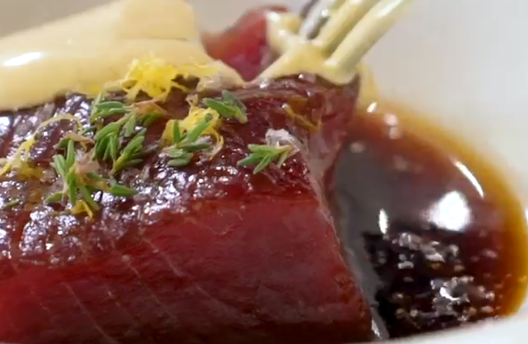 L’amore per quel piatto tipico della tradizione torinese ha fatto scattare la scintilla del genio creativo napoletano. Così, Cannavacciuolo ha invertito gli elementi della ricetta, creando così il tonno vitellato.