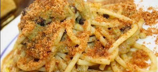 Il segreto di questa ricetta è una salsa a base di “vruocculi”. Con questo termine a Palermo s’intende il cavolfiore verde comune. La pasta viene chiamata “arriminata”, perchè deve essere rimescolata in tegame.