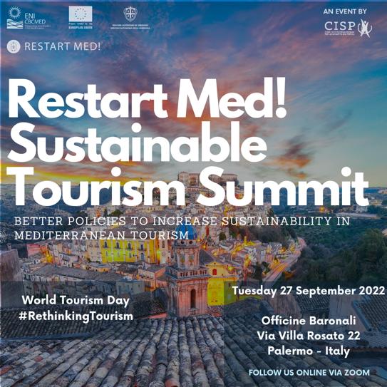 Martedì 27 settembre si svolgerà a Palermo presso le Officine Baronali (Via Villa Rosato, 22), dalle ore 9:00 alle 18:00, il summit “Restart Med! Sustainable Tourism Summit”, dal sottotitolo “Migliori politiche per accrescere la sostenibilità del turismo nel Mediterraneo”.