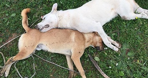 I cani sarebbero morti in modo differente. Uno con la testa massacrata da più colpi ed il secondo, invece, strangolato. Il rinvenimento è avvenuto in contrafa Dibergato; i due animali erano legati per la zampe.