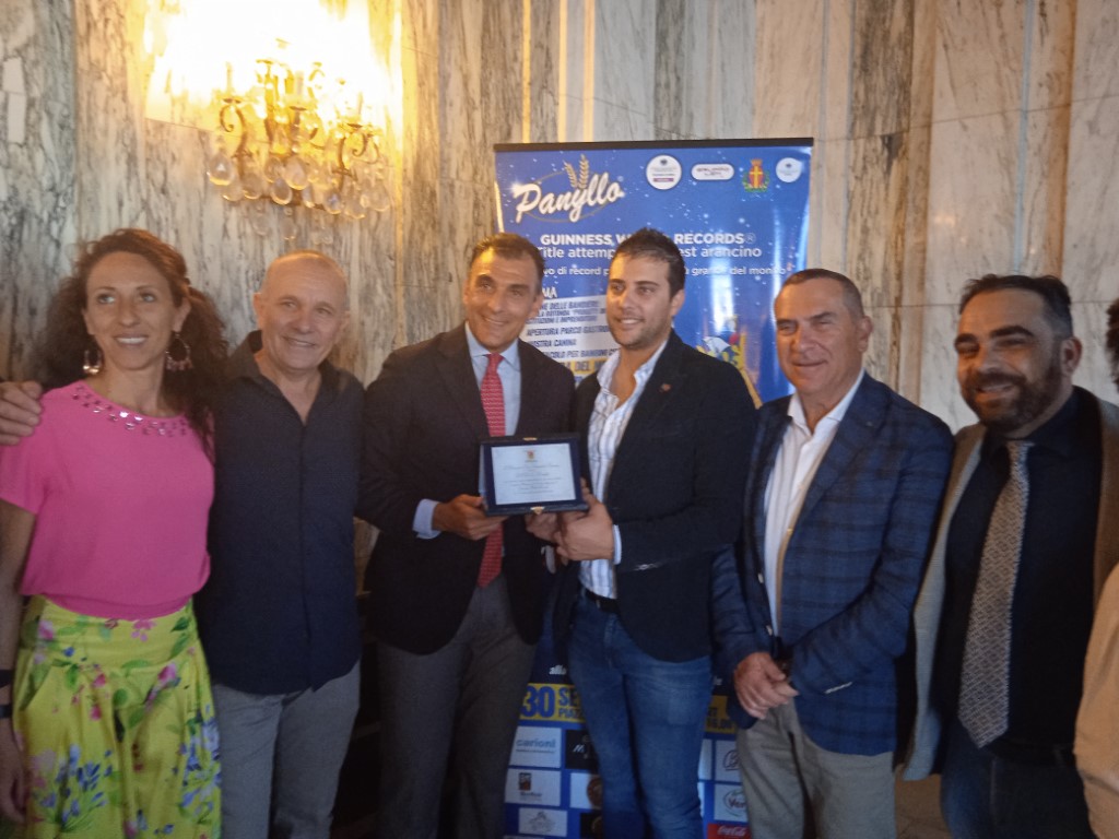 Oggi pomeriggio presso la Camera di Commercio di Messina l’assessore regionale alle Attività produttive, Edy Tamajo, ha consegnato una targa a Stefano e Davide Ferro del Panificio Panyllo. “Per il grande merito imprenditoriale e per aver esaltato la città di Messina e la Sicilia attraverso il Guinness World Record per l’arancino più grande del mondo”. Questa la motivazione del riconoscimento della Regione Siciliana, che scaturisce dal risultato raggiunto dalla famiglia Ferro il 30 settembre scorso a Piazza Duomo, con un arancino di 56,200 chili, stabilendo il primato mondiale certificato da Lorenzo Veltri, giudice del Guinness World Records, nel corso dell’evento “MEGARANCINO l’arancino più grande del mondo: c’è la storia dentro”.