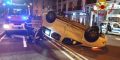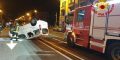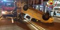 Dopo il contatto fra i due mezzi un’auto si è ribaltata terminando la propria corsa sottosopra al centro della carreggiata bloccando la strada in entrambi i sensi di marcia.