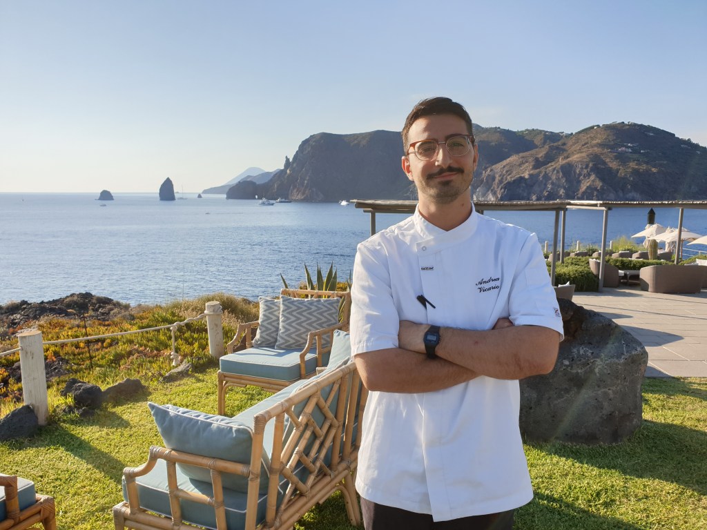 Pugliese di origine, siciliano d’adozione ma cittadino del mondo. Andrea Vicario, 26 anni, è lo chef del ristorante vegetariano “Tenerumi”, novità del Therasia Resort&Spa di Vulcano, nelle isole Eolie.