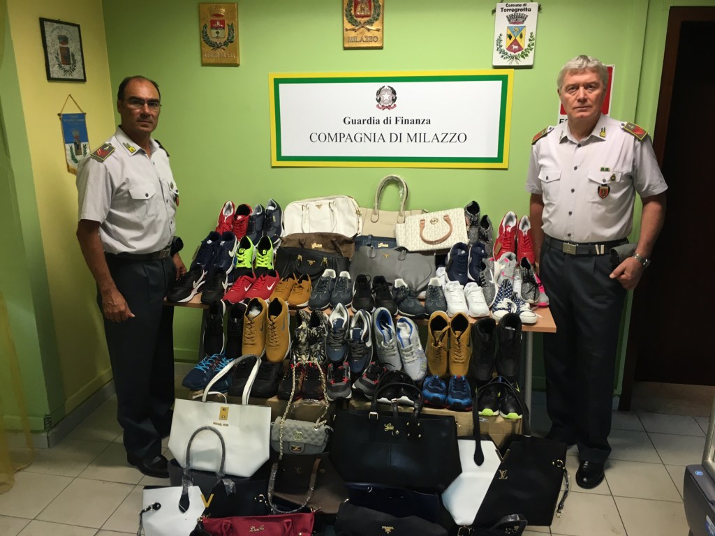 False griffe che invadono il mercato. La Guardia di Finanza di Milazzo ha concluso, nei giorni scorsi, un’operazione anticontraffazione che ha portato alla denuncia di sette persone ed al sequestro di prodotti coi marchi falsificati delle più note griffe di moda quali “Luis Vuitton”, “Chanel”, “Prada”, “Gucci” “Guess” e “Liu-jo” e di abbigliamento sportivo come “Nike”, “Adidas”, “Converse” e