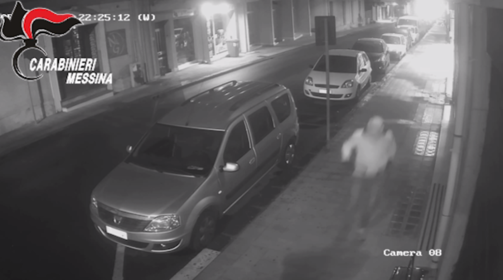 Le investigazioni hanno consentito di appurare, attraverso la visione delle immagini riprese dal servizio di videosorveglianza di un’attività commerciale adiacente al negozio oggetto dell’esplosione, che l’ordigno era stato collocato da due uomini, giunti a bordo di un’autovettura Nissan Micra di colore bianco, che proveniva dalla direzione Messina-Catania. Le telecamere hanno immortalato i due soggetti che hanno parcheggiato il mezzo lungo l’adiacente via Leandro e, sono scesi dal veicolo, prelevando da una busta (successivamente sequestrata e repertata) un oggetto non meglio identificato. L’individuo che viaggiava sul lato passeggero, con il volto travisato, ha preso il contenuto della busta ed è corso verso il negozio posizionando l’ordigno nei pressi della vetrina, innescando la miccia. Poi è tornato di corsa verso l’autovettura ove il complice che lo attendeva è partito immediatamente in direzione Catania.