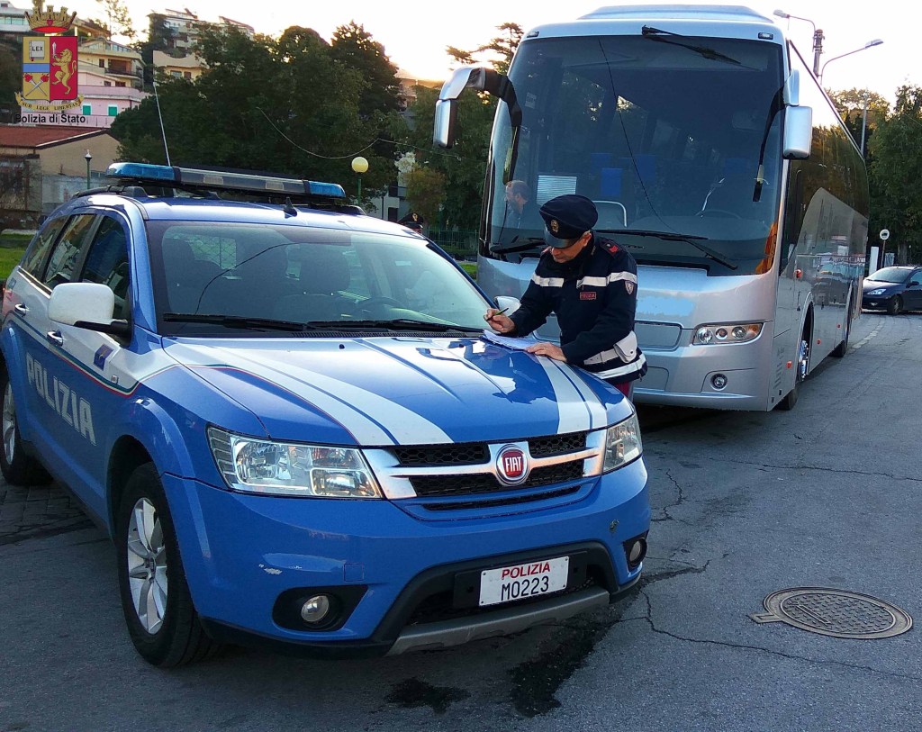 Gli accertamenti effettuati dai poliziotti su 8 pulmini hanno evidenziato che 4 di essi erano privi delle autorizzazioni necessarie. Numerose le sanzioni contestate per le violazioni al Codice della Strada.