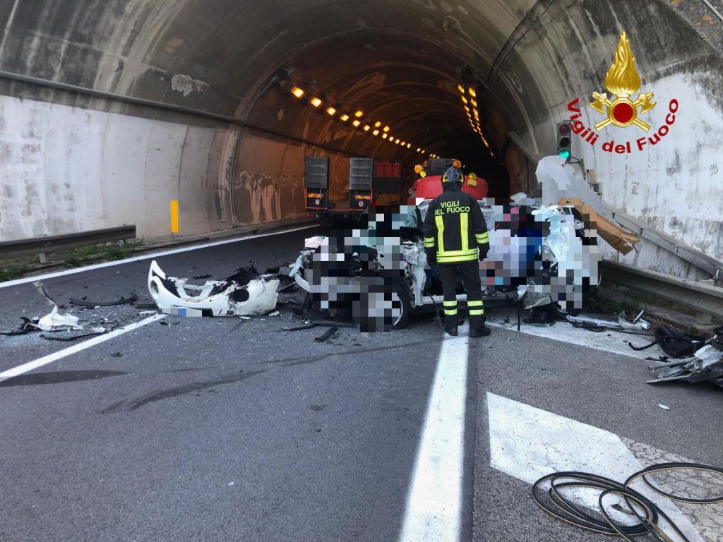 Per cause ancora in fase di accertamento un’auto è andata a scontrarsi con un Tir. Il mezzo pesante ha quasi del tutto schiacciato l’automobile.