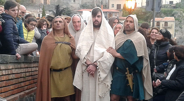 Circa cento personaggi tra attori e comparse in costumi d’epoca coinvolti e diretti dal regista Vittorio Bruno fanno “rivivere” il martirio di nostro Signore.